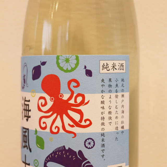 『白麹純米酒 海風土(sea food)ブルー』は、今田酒造本店の地元、安芸津町の特産品である牡蠣のために酒質設計された、名前の通りシーフードに合う日本酒です。