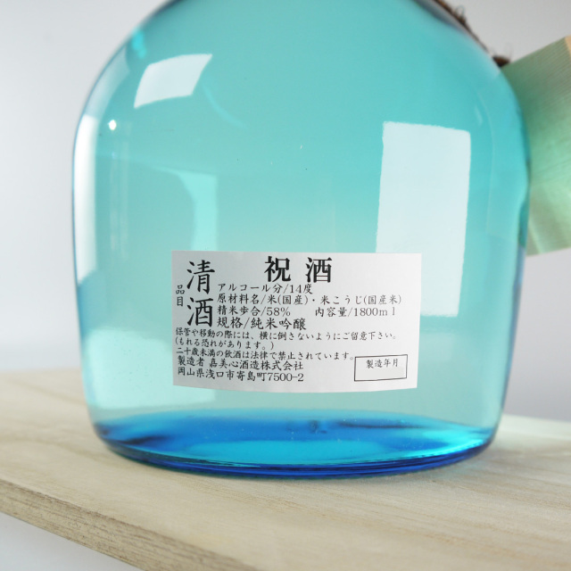 嘉美心酒造(かみこころしゅぞう)は、岡山県浅口市で日本酒を醸す酒蔵です。お米本来の甘味を引き出した旨口のお酒は、ANAのファーストクラスで提供されたこともあります。技だけでなく設備にも優れ、常に消費者側に立った安心の酒造りをすることでも知られています。「祝酒(いわいざけ)」は、嘉美心酒造が心を込めて送り出す、お祝いの席に嬉しい純米吟醸の日本酒です。かわいくて懐かしい1800mlのミニ斗瓶。絵馬もついています。味わいは優しさあふれる旨口。デザインを度外視しても手に入れたい1本です。品質を保つために火入れしてあるので、冷蔵庫に入らない場合は冷暗所で保管ください。![]()