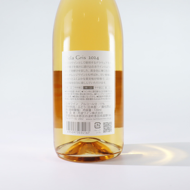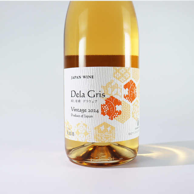 通常白ワインとして使用するデラウェアを果皮や種子を果汁に漬け込む赤ワインのように醸して発酵させました。黄金色に輝く色合いからオレンジワインとも呼ばれ、甘いフルーティーな香りとふくよかな果実味が特徴で、ぶどうの旨味を存分に楽しんでいただけます。