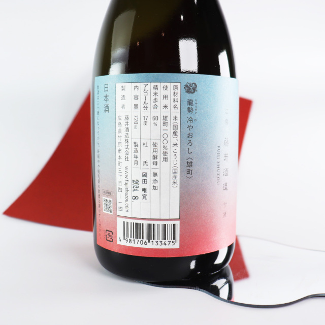 藤井酒造は1863年、良質の水に恵まれた広島県竹原に創業した酒蔵です。日本初の清酒品評会で一等賞を獲得した「龍勢」を筆頭に、「夜の帝王」などの地元で愛される日本酒を製造。2021年の豪雨災害を乗り越え、美味しいお酒を造り続けています。そんな龍勢の「ひやおろし」。ひやおろしとは、春先に造ったお酒を夏が過ぎるまで寝かせる商品です。『龍勢 冷やおろし 雄町』は、人気の酒造好適米である雄町をしようしています。重厚感がある雄町のふくよかな旨味にまろみを孕んだ味わい。米と水。醸造と熟成を知り尽くした酒蔵だからこそ到達できるバランスです。ラベルは薄群青から「柿色(かきいろ)」へとグラデーションして行き、秋の夕日を連想させます。![]()