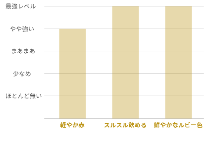 軽やかな赤って正直そこまで期待しないこともあるんですが、これは一口目からサワーチェリーの香りがふわっと広がって、思わず「いいじゃん」と声が出ました。渋みが控えめでスルスル飲めるのに、ちゃんと旨みがあって物足りなさがないんです。仕事終わりに軽めのつまみで一杯、みたいなシーンにすごく合いますね。
