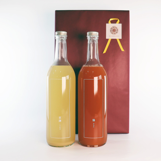 シナモンの香り全開の陽(ひなた)、力強いジンジャーがクセになる草譯(くさわけ)。正直どちらも選べないほど、個性的でインパクトのある味わいなのです。ですからぜひ、2本セットでどちらも試していただきたい!というギフトセットです。ノンアルコールの分野で特異な輝きを放つ存在「KINO」。おしゃれな見た目だけではない、パッションのある味わいをぜひセットでご賞味ください。